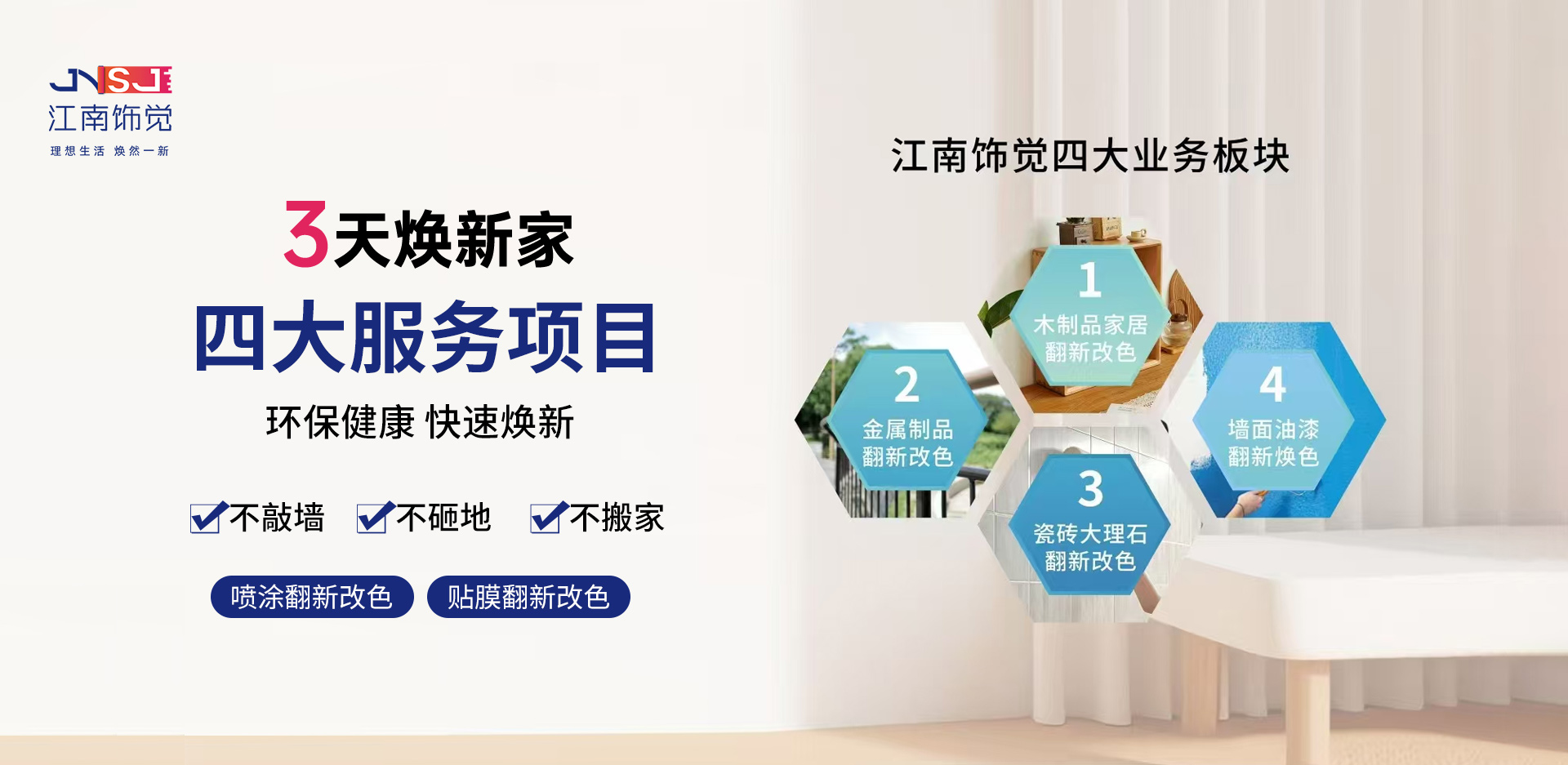 品牌介紹BRAND INTRODUCTION江南飾覺家居煥新連鎖品牌誕生于2023年,由浙江家居修護(hù)行業(yè)優(yōu)秀一眾人士共同創(chuàng)建,總部坐落于浙江溫州,是一家專業(yè)致力于家居煥新改造連鎖品牌,老房陳舊裝修家居煥新、省錢、省心、快捷、實現(xiàn)煥新家,為消費者打造高···